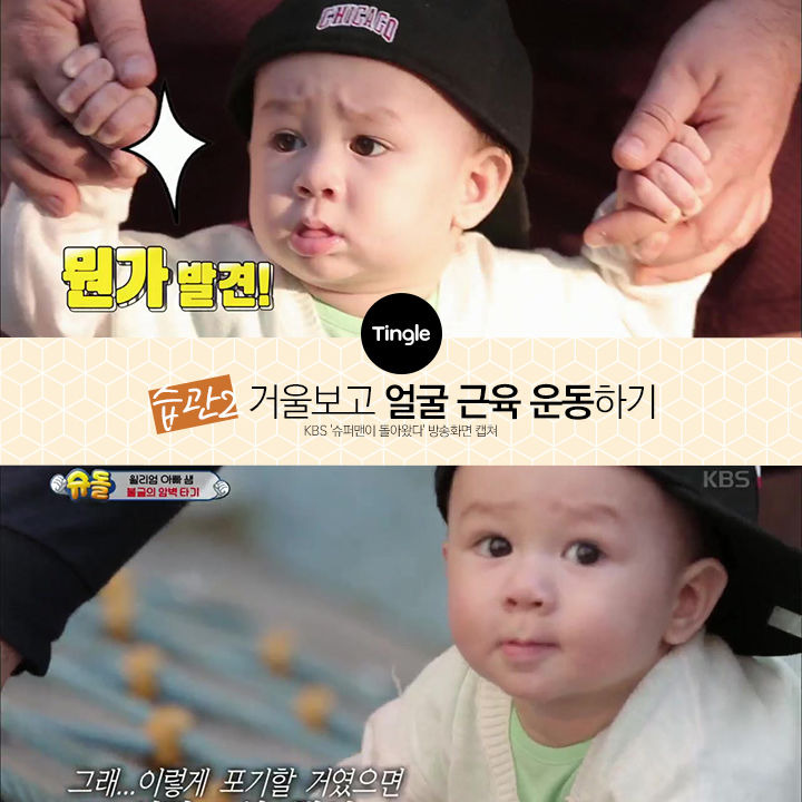 ②鏡を見て顔の筋肉運動をする