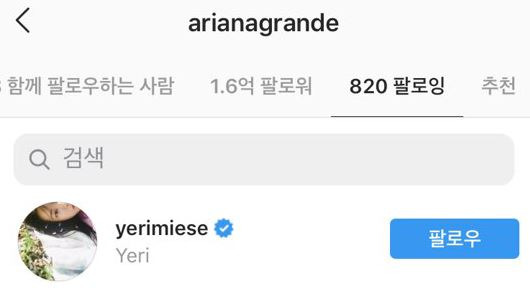 イェリのファンがインスタで、アリアナグランデがイェリをフォローしていることを見つけてファンの間で話題に(*゚∀゚*)