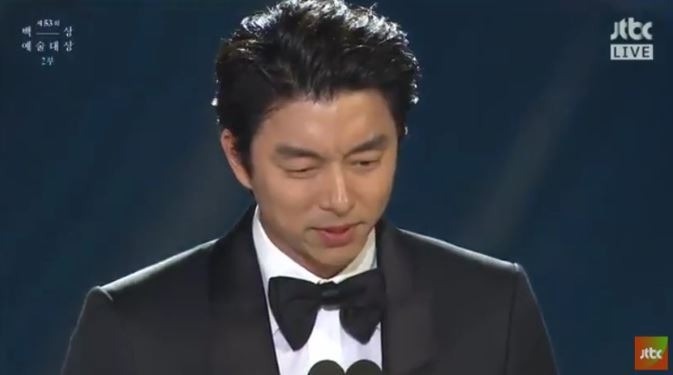 2017年には、韓国大ヒットドラマ「トッケビ」で百想芸術大賞TV部門最優秀演技賞を受けたコン・ユは、「こんにちは、私はコン・ユです。ああ、私はコン・ジチョルという名前も持っています。今日に限って訳もなく本名を言いたくなりました。 数ヶ月前まで私は、燦爛たる神でしたが、か弱い人間にもどりました(ドラマ「トッケビ」で演じた役柄)」と話し始め観客の笑いを誘いました!