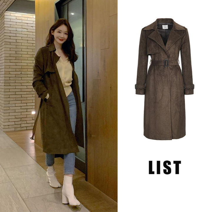 クラシックでありながらもクールなトレンチコートを探しているなら、モダンなカーキブラウンカラー、スエード素材のトレンチコート♡