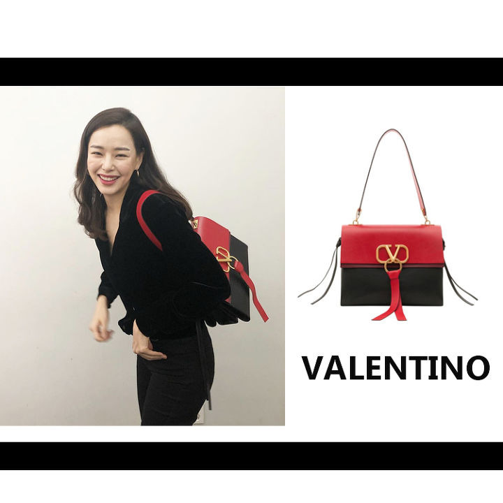 シンプルな代わりに小物でポイントを与えるスタイルが好きな方には、オールブラックルックに赤と黒のコントラスト、ここにVロゴが特徴的なバレンチノVのリングバックをマッチするのがおすすめ♡