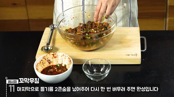 エゴマ油大さじ2入れてもう一度混ぜ合わせればコマク和え物の完成!