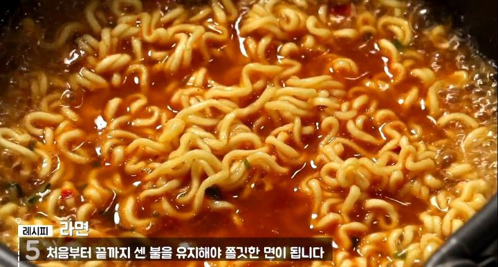 最初から最後まで強い火を維持する。このとき、小魚の塩辛大さじ1を入れれば深いスープの味を出すことができる。