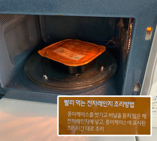 カップラーメンを待っている間にマクチャン(ホルモン)をレンジで温めます。
