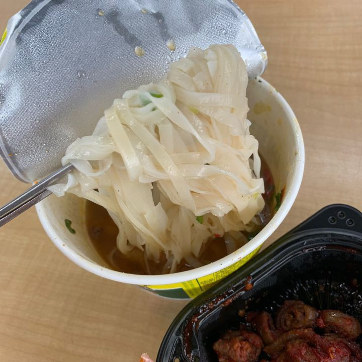 温めたマクチャンにカップラーメンの麺だけを入れます。