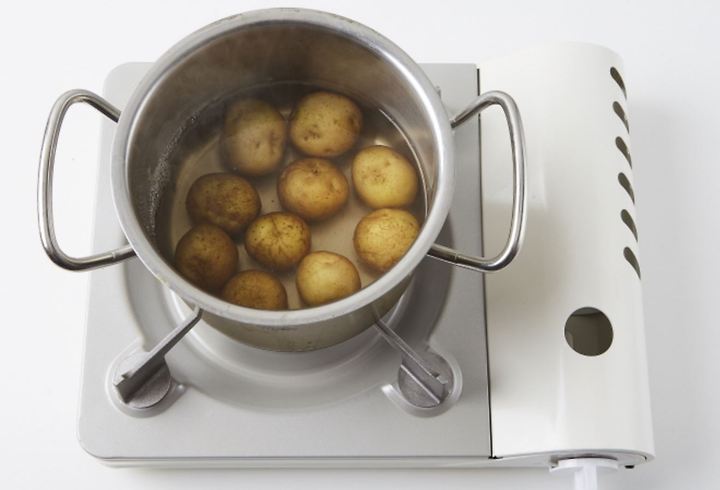 ジャガイモはきれいに洗って鍋に入れ、中火で煮る。