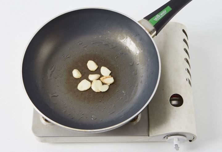 中火に熱した鍋にサラダ油(大さじ1)をひき、ニンニクを入れて香りが出るまで炒める。
