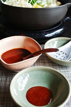 タレは、小皿にとってタッカンマリのスープと割って食べれば辛すぎずおいしく楽しむことができます♡
