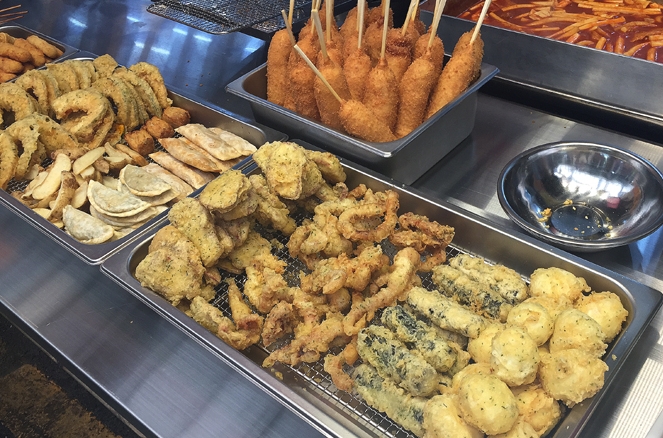 「튀김(ティギム)」というのは『韓国式天ぷら』のことで、屋台では色々な種類の「ティギム」を販売しています(●´ω`●)