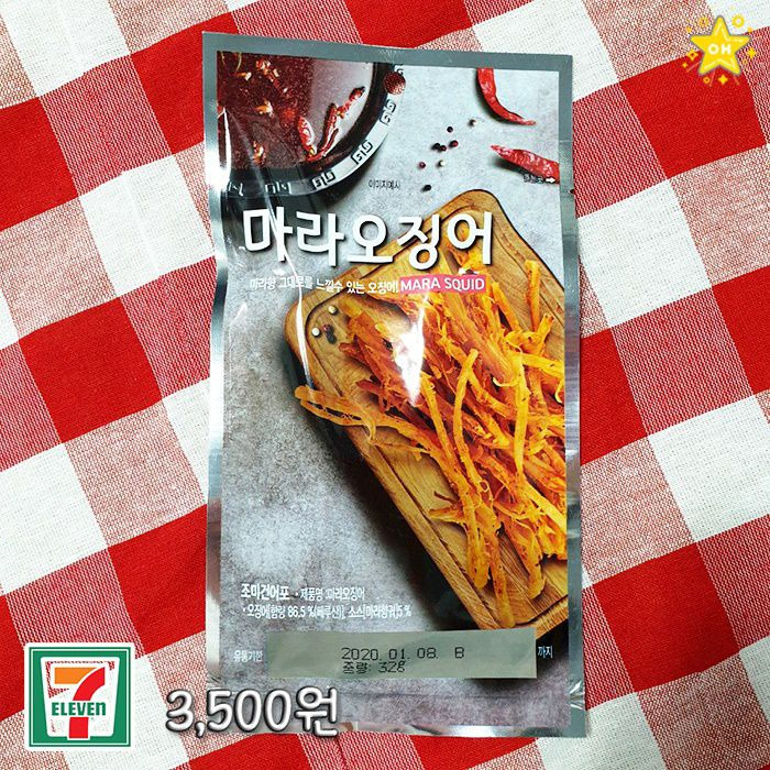 セブンイレブンで販売している、乾燥させたイカにスパイスをふりかけ「麻辣味」に仕上げた「마라 오징어」☆
