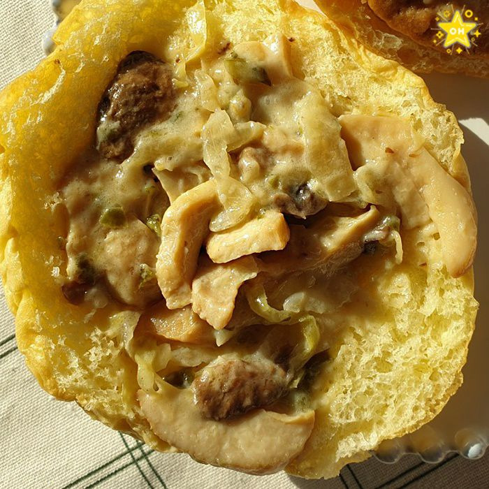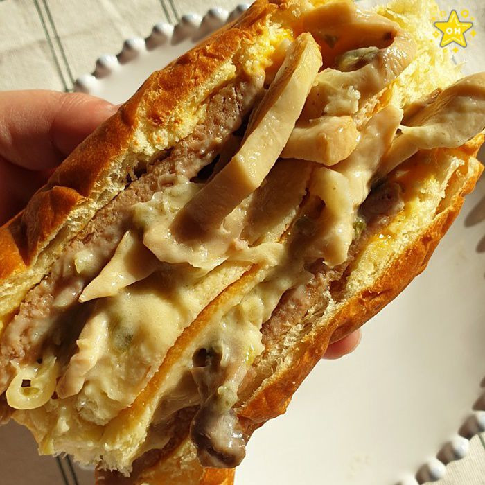 深く濃い味のトリュフクリームソースとキノコの食感が調和したハンバーガー♡