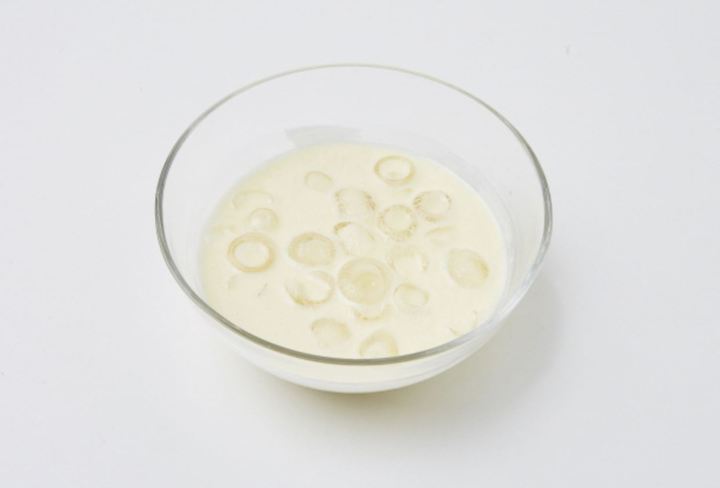 天ぷら粉(1カップ)と氷水(1カップ)を混ぜて生地を作る。