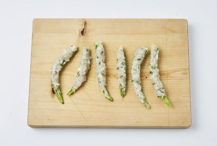 青唐辛子の中に③で混ぜ合わせた生地を入れる。