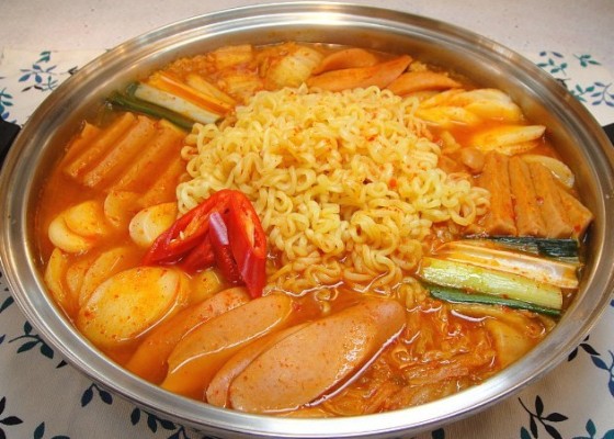 キムチ、野菜、チーズ、餅など好きなものを入れて食べるのが現在のスタイルで、どこかジャンクな味とボリューム感で、若い世代を中心に韓国で大人気♡