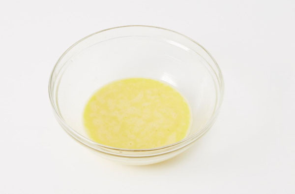 卵をこした後、塩(小さじ1)、でん粉、水(水大さじ2 +でん粉大さじ1)を入れて混ぜる。