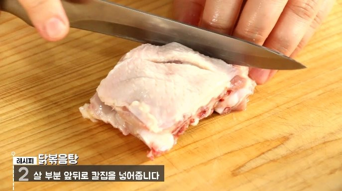 洗って準備した鶏肉の皮部分に切れ目を入れる。