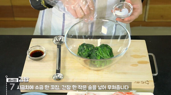 ほうれん草に塩、醤油小さじを加えて味をなじませます!