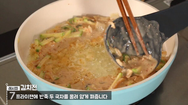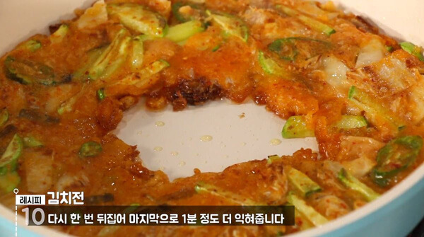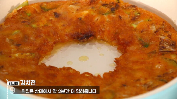 その後、再び裏返し最終的に1分ほど焼けばカリカリキムチチヂミの完成!