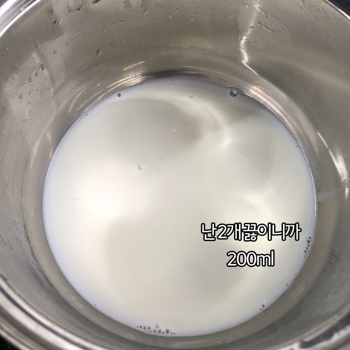 鍋に200mlの牛乳を入れます。