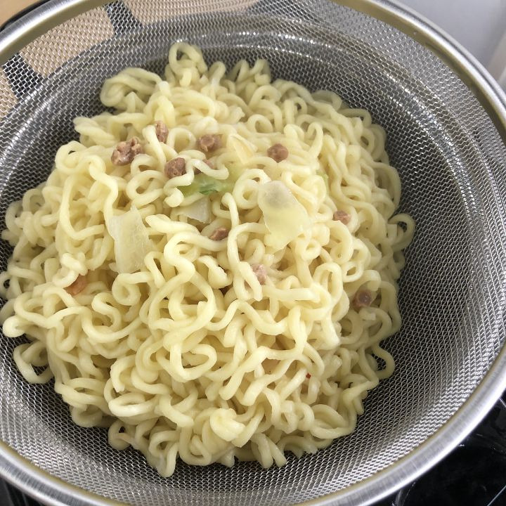 茹で終わったら、ざるに移して水を切ります。
