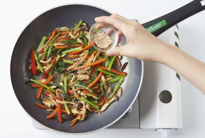 茹でた大根のまびき菜入れて2分間炒めた後、ごま油(小さじ1)をひき、ごまをかけたら完成☆