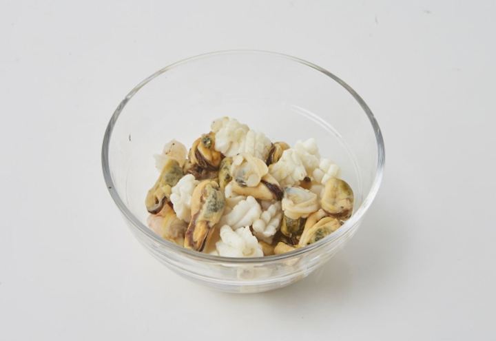 シーフードは流水できれいに洗う。